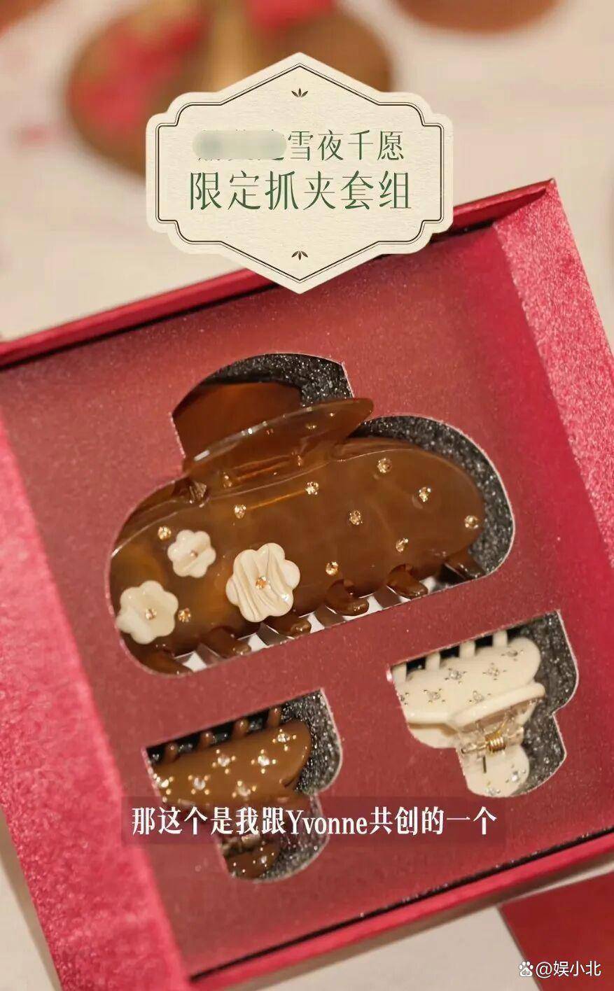 视频中,吴千语展示了该品牌的新款抓夹,并介绍这是跟Yvonne(程晓玥)共创的抓夹,名字叫“雪夜千愿”。