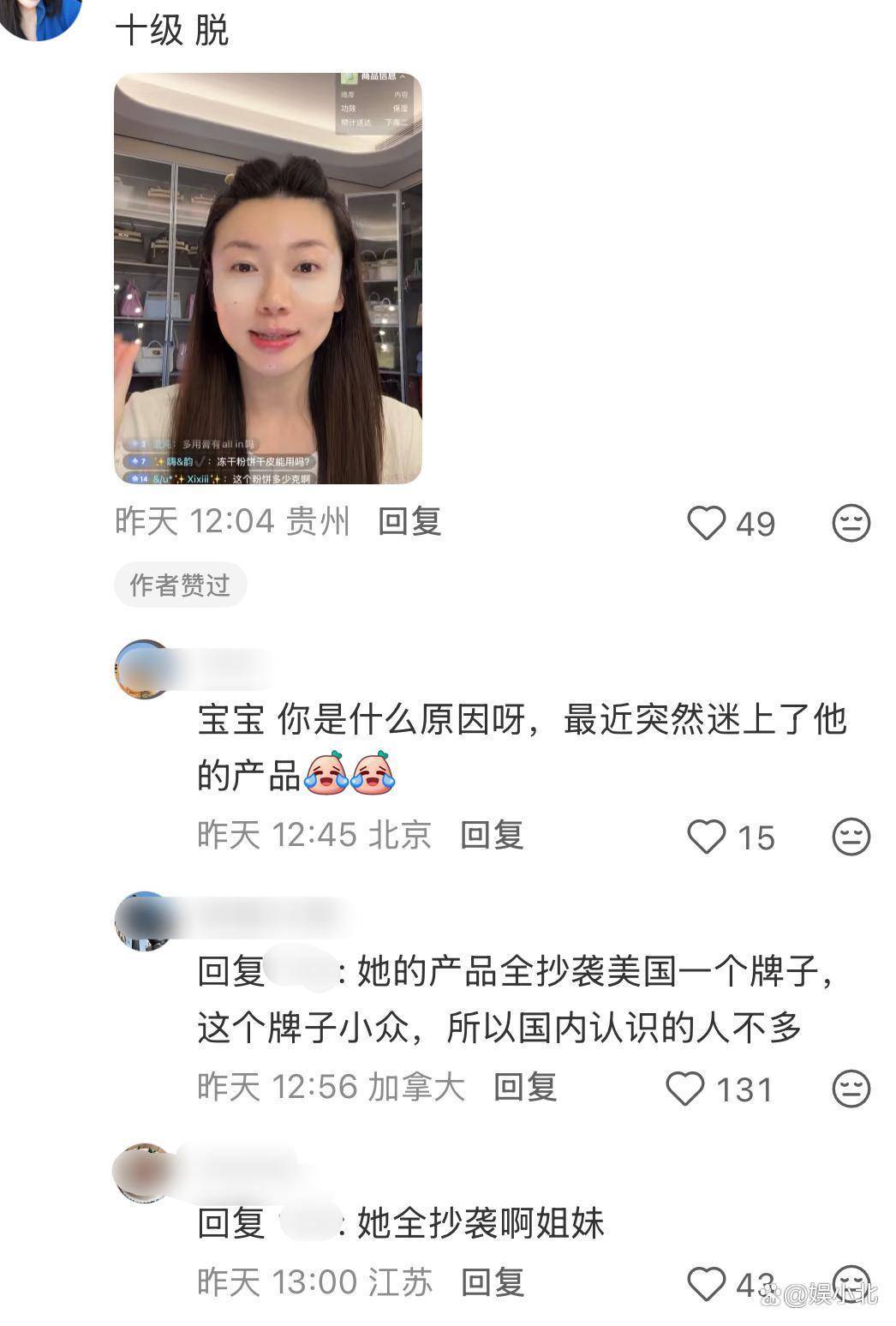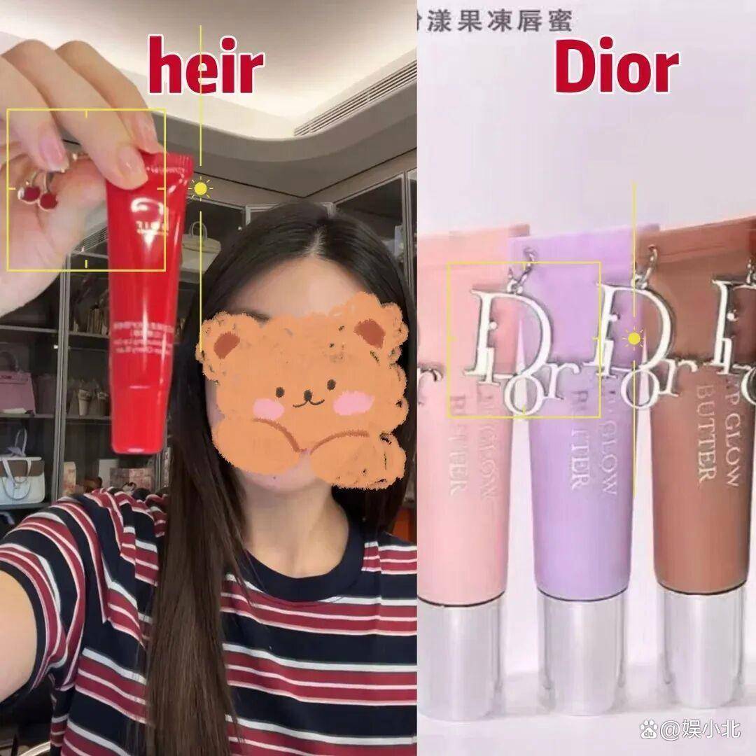 包括她推出的润唇膏,外包装造型与某奢侈品雷同。