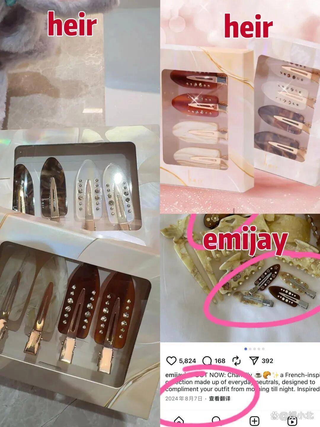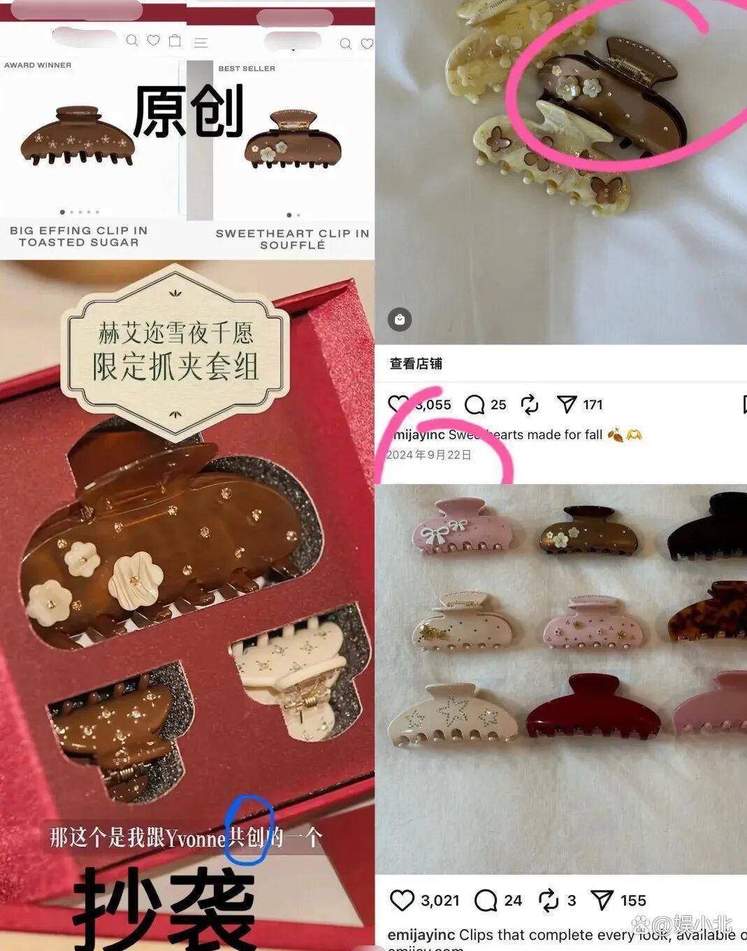 有网友发现,吴千语手里的抓夹与国外一小众品牌极其相似,无论是造型、配色,还是点缀的小装饰,并且国外品牌的该款抓夹比吴千语手里的更早面世。