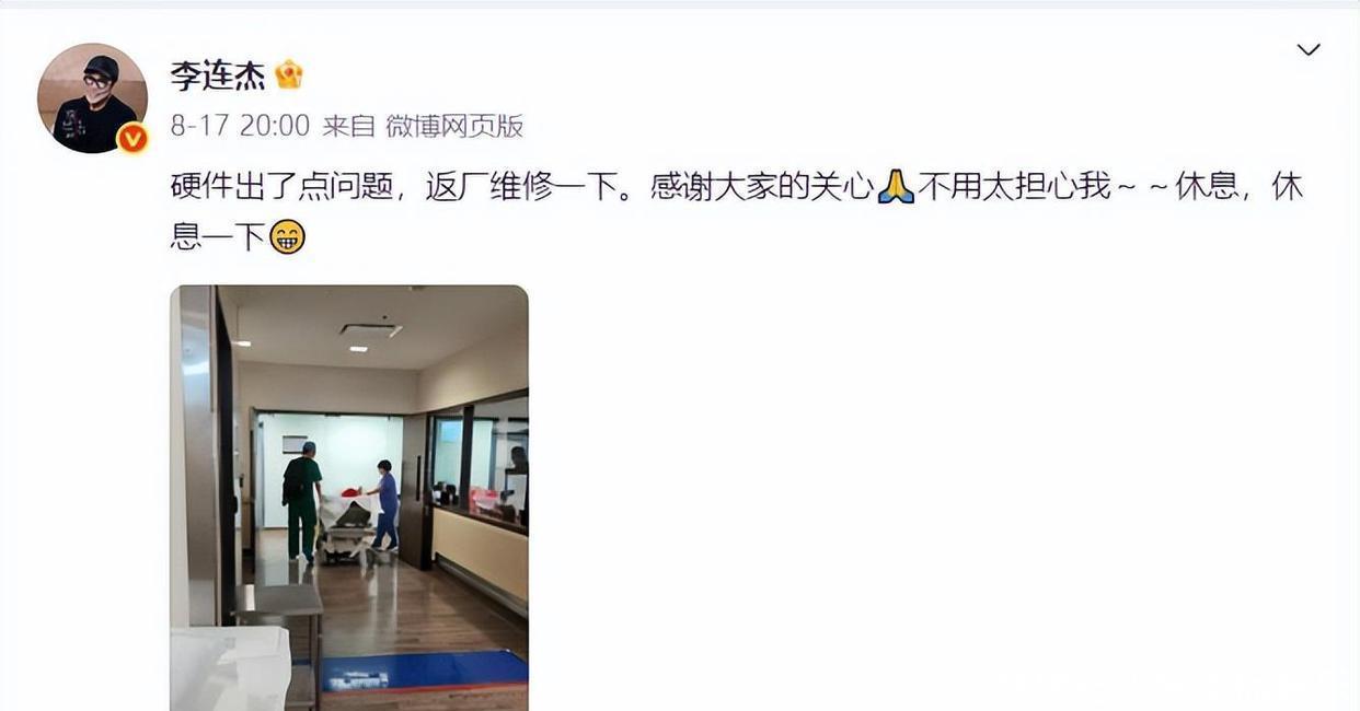 8月18日,李连杰也在社交平台上发声报平安,说自己已经“出厂”了,还晒了一张吃刀削面的照片,顺便感谢大家的挂念和祝福。