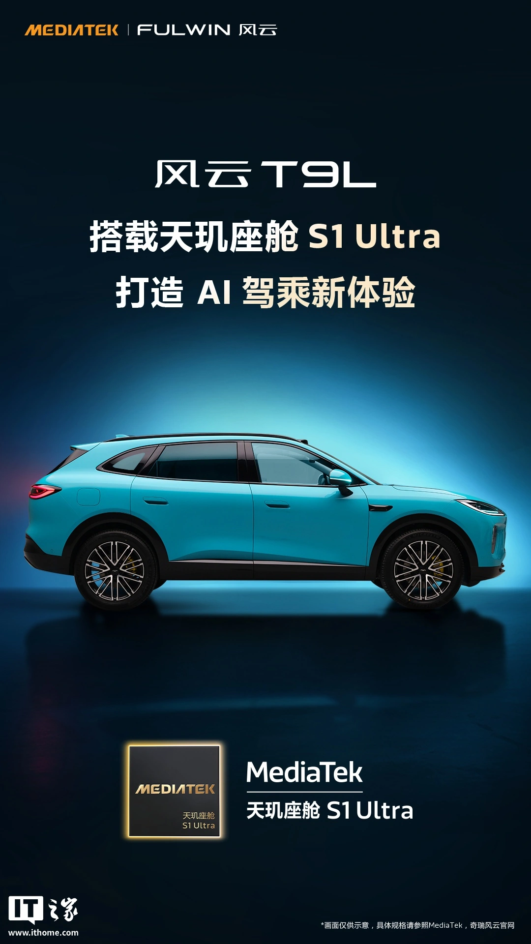 联发科官方认领:奇瑞风云 T9L 汽车搭载天玑座舱 S1 Ultra,支持 54 TOPS NPU 算力