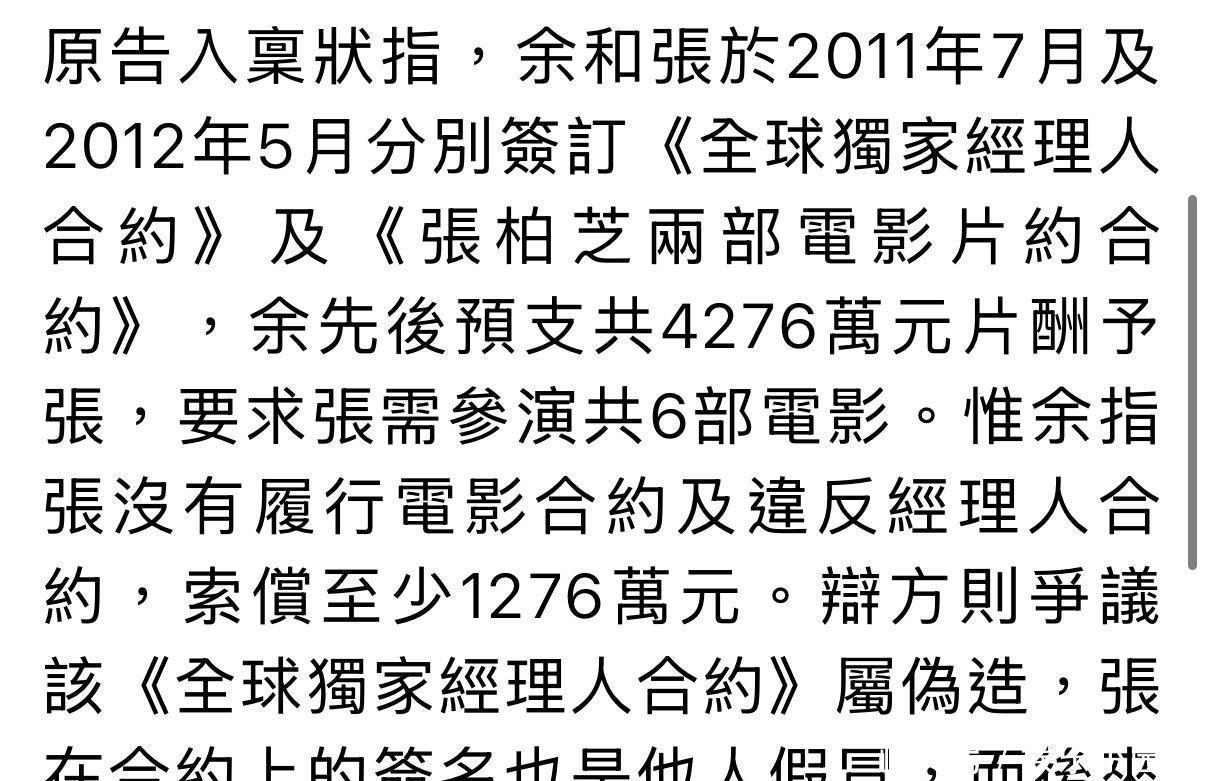 五年纠纷了,2020年开始的案子,拉锯战持续,谁也不让步,核心是电影合约情况,余毓兴给了巨额片酬,张柏芝一部都没拍,账目很明白,余毓兴给了4276万港币,现在追讨一千多万呢,这钱,可不少。